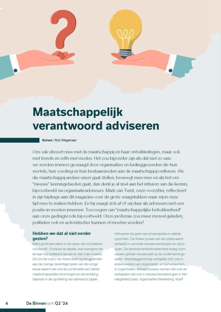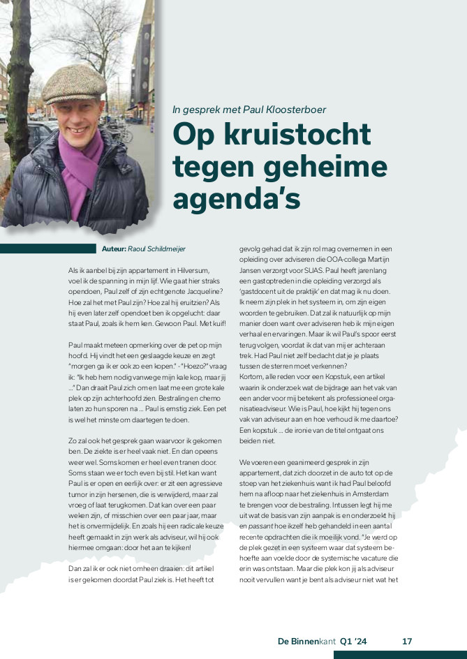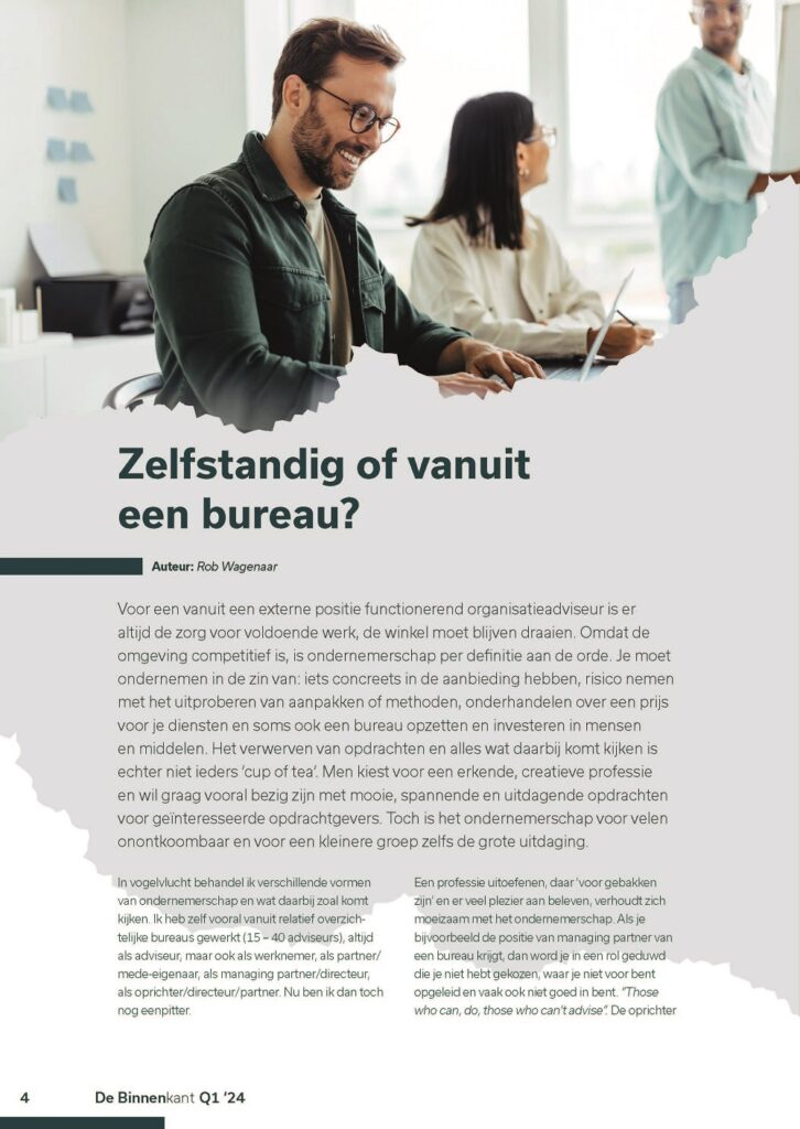 Voor een vanuit een externe positie functionerend organisatieadviseur is er