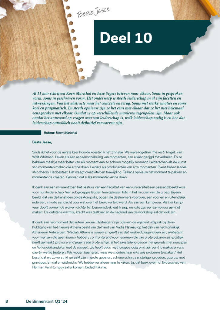 Ik wil beginnen met je te bedanken dat we deze brieven naar elkaar blijven schrijven. Schrijven is altijd een soort van thuiskomen bij mezelf